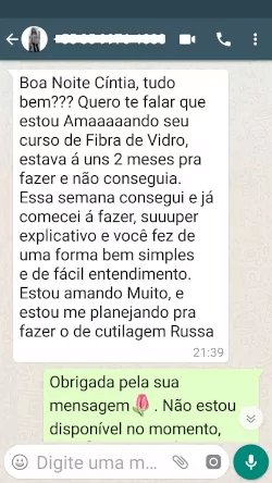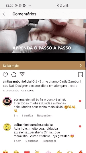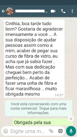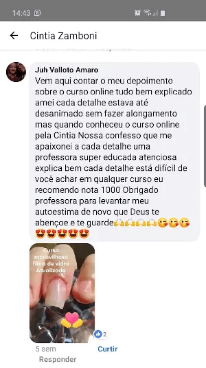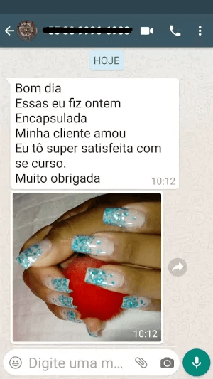 Tenho total consciência de que colocando em prática o Curso Nail Designer de Sucesso terei muito mais habilidade para atender minhas clientes.